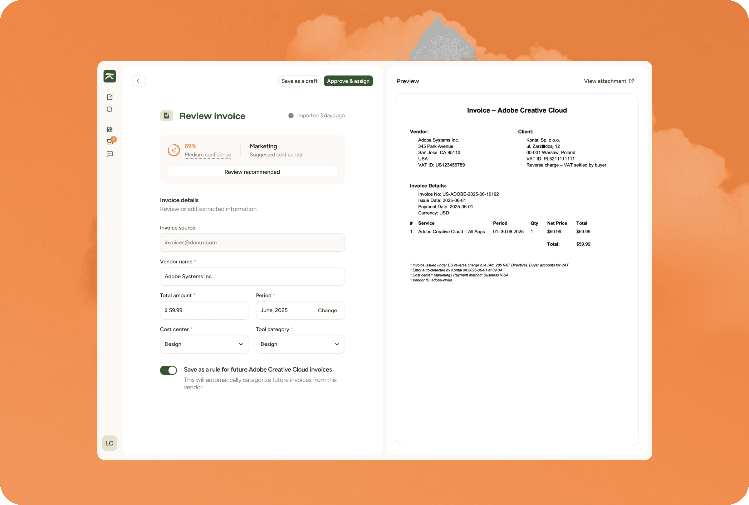 Kontai is a startup created within Startup Bakery, an Italian startup studio. The product focuses on helping companies manage and optimize their SaaS subscriptions and invoicing processes. After validating their market concept through research, they needed to develop their first prototype to demonstrate market traction and attract investor interest.