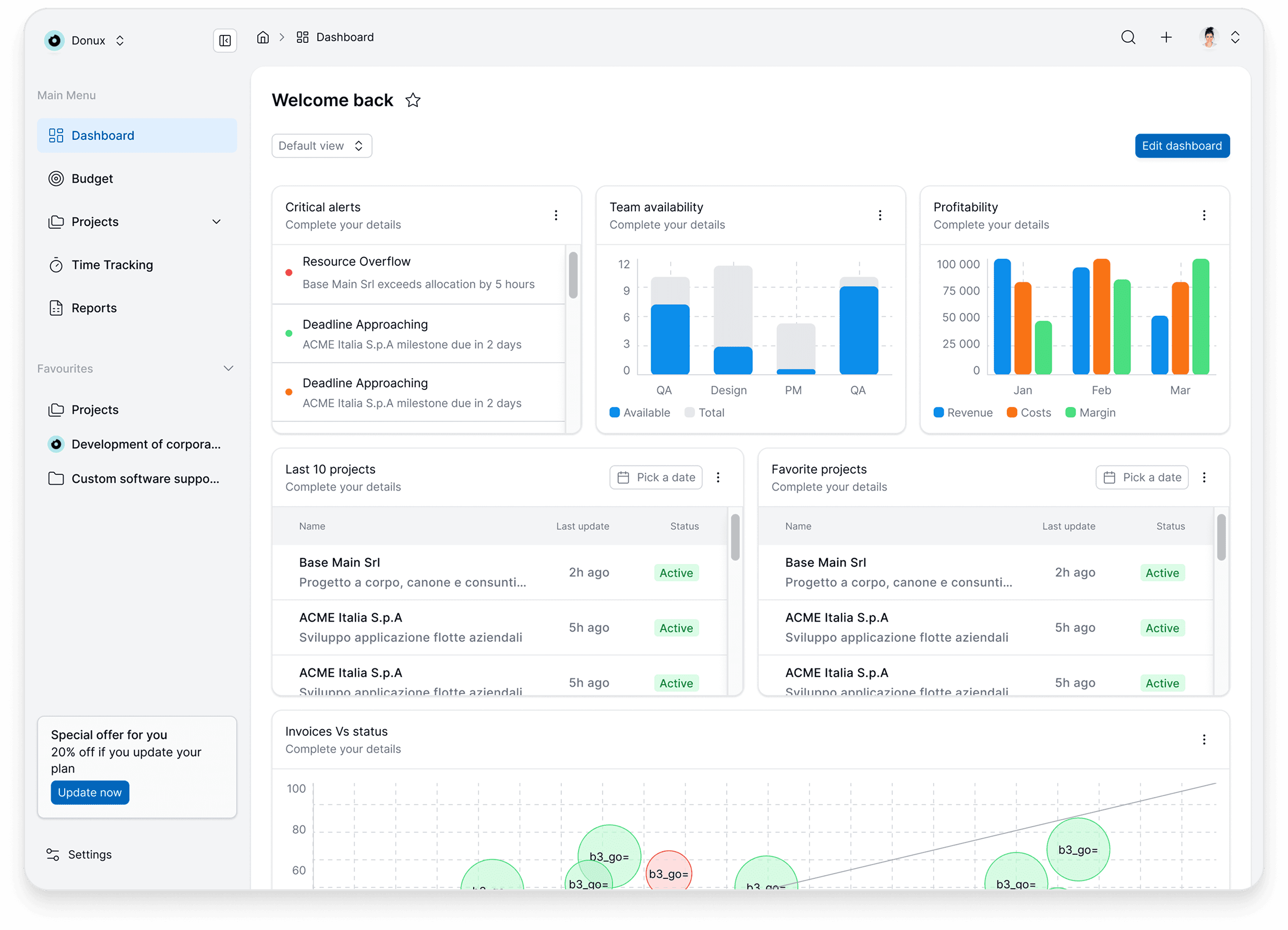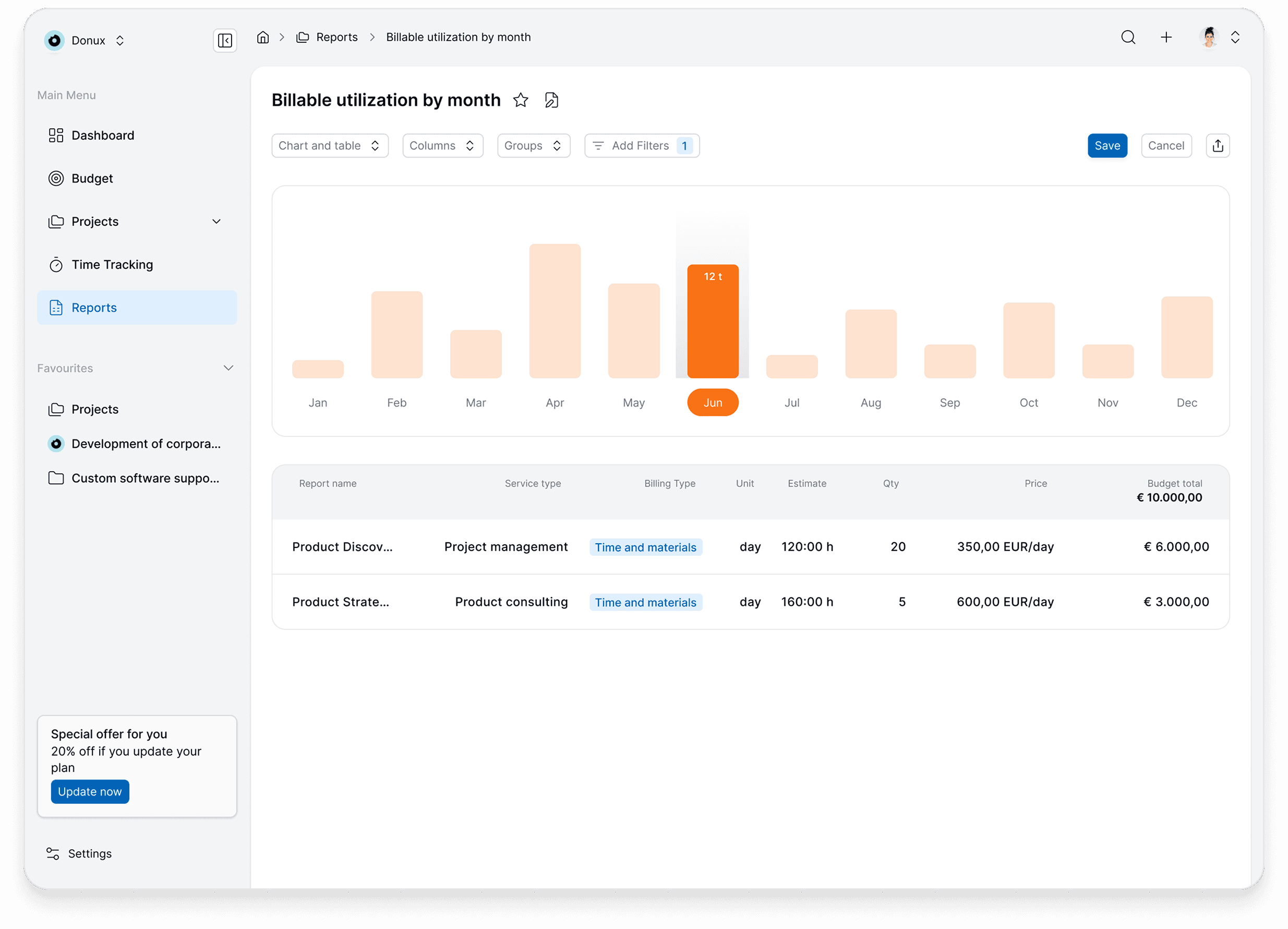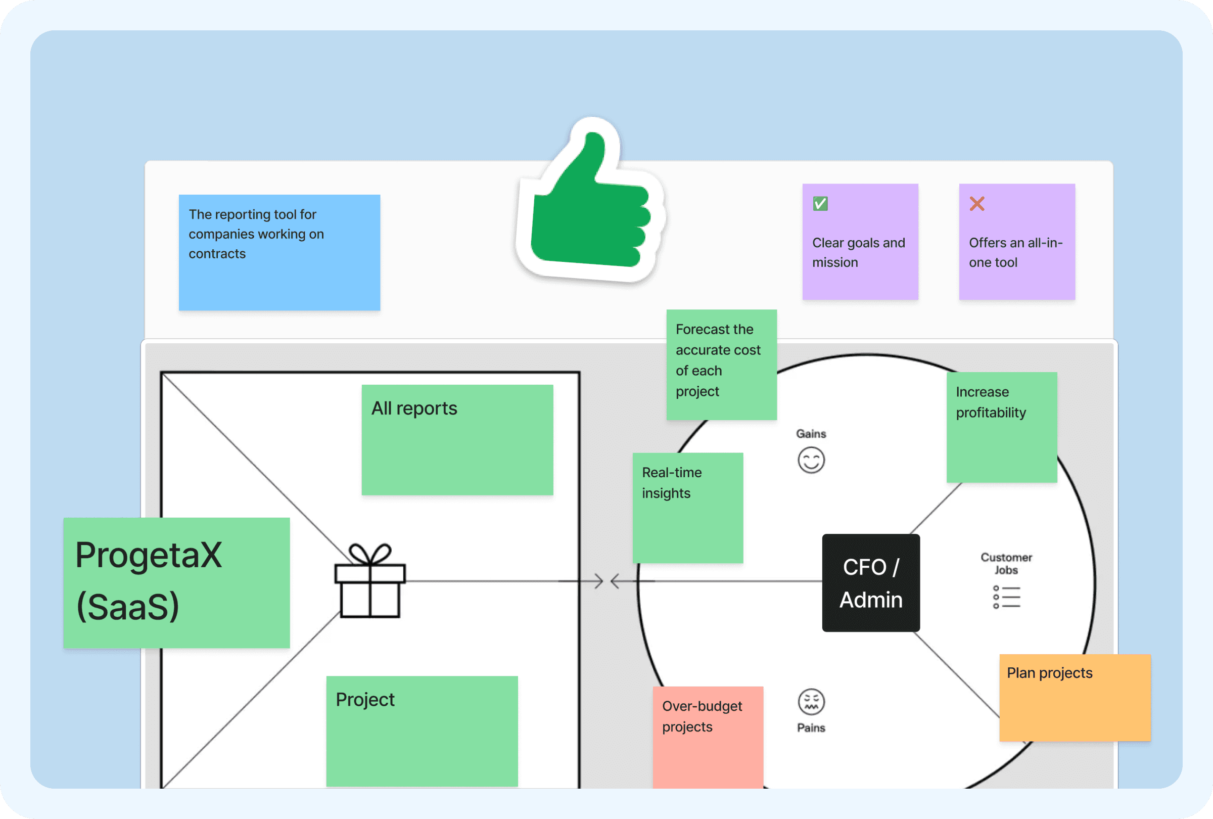We analyzed how the platform could position itself in the market. We looked at major project management tools, Monday, Wrike, Asana, ClickUp, Teamwork, and found that competing on feature parity with these was not realistic. The value was in ESG/ISG reporting, where few competitors existed. We defined different user profiles (CEO, CFO, Admin, Operations Manager, Account Manager) and created three value propositions around them. Together with the client, we agreed to focus on C-level and admin profiles, positioning the platform as a reporting tool for project-based businesses rather than a general PM tool.