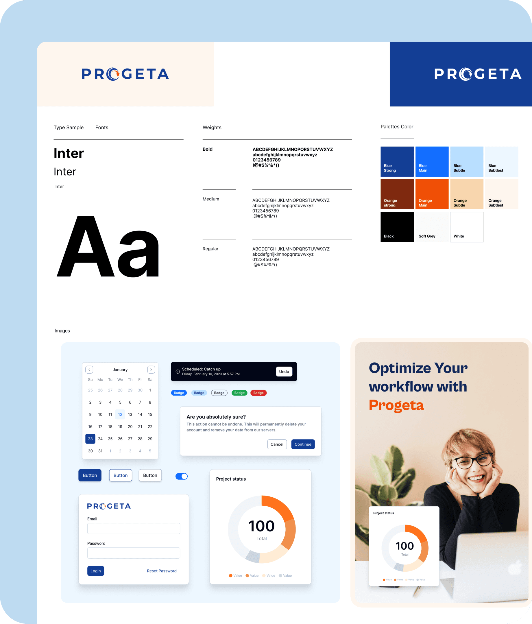 Modern color palette and typography